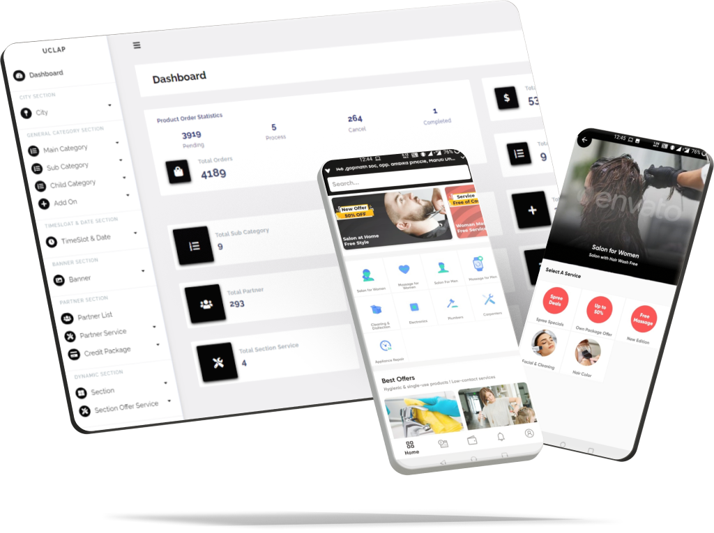 Ce clone d'UrbanClap, personnalisable et évolutif, est tout ce qu'il vous faut pour lancer rapidement votre entreprise. Avec cette application, vous pouvez démarrer votre activité de services à la demande en seulement un jour.